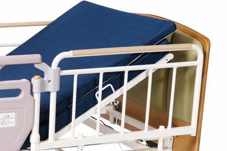 為了減輕坐輪椅的人員或者看護(hù)人員的負(fù)擔(dān)可 以自由升降。只要操作手控器來控制床的高度可 以實現(xiàn)25cm~61cm的無級升降調(diào)節(jié)。